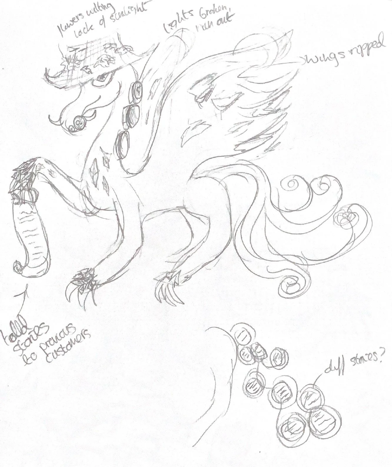 After generating the name “The Waltzeyes Jeweller” using randomly selected words, I came up with a concept for a mythical beast. I imagined the character to be an extravagant performer who loves to be in the spotlight. To be produced as a vinyl sticker, I simplified the design, creating the final vector illustration in Adobe Illustrator.